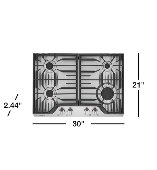 Frigidaire 30" Gas Cooktop – 4-Burner Sealed with SpillSafe & Continuous Grates