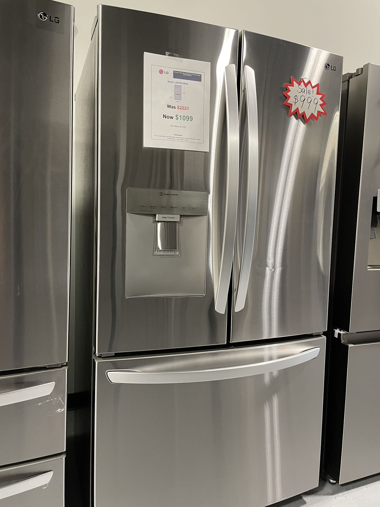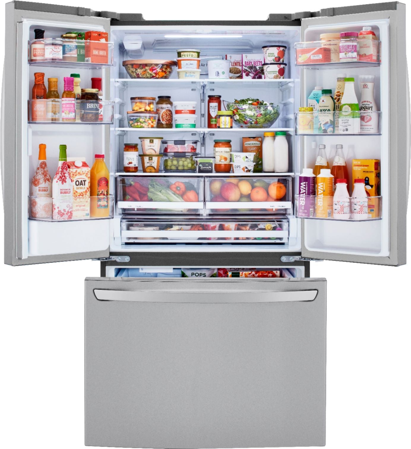 Discover a spacious 29 cu. ft. of storage - now more useful space than ever. Without a bulky ice maker on the top shelf, you can use every inch storing your fresh favorites. This LG French Door refrigerator also gives you more chilled water than before.