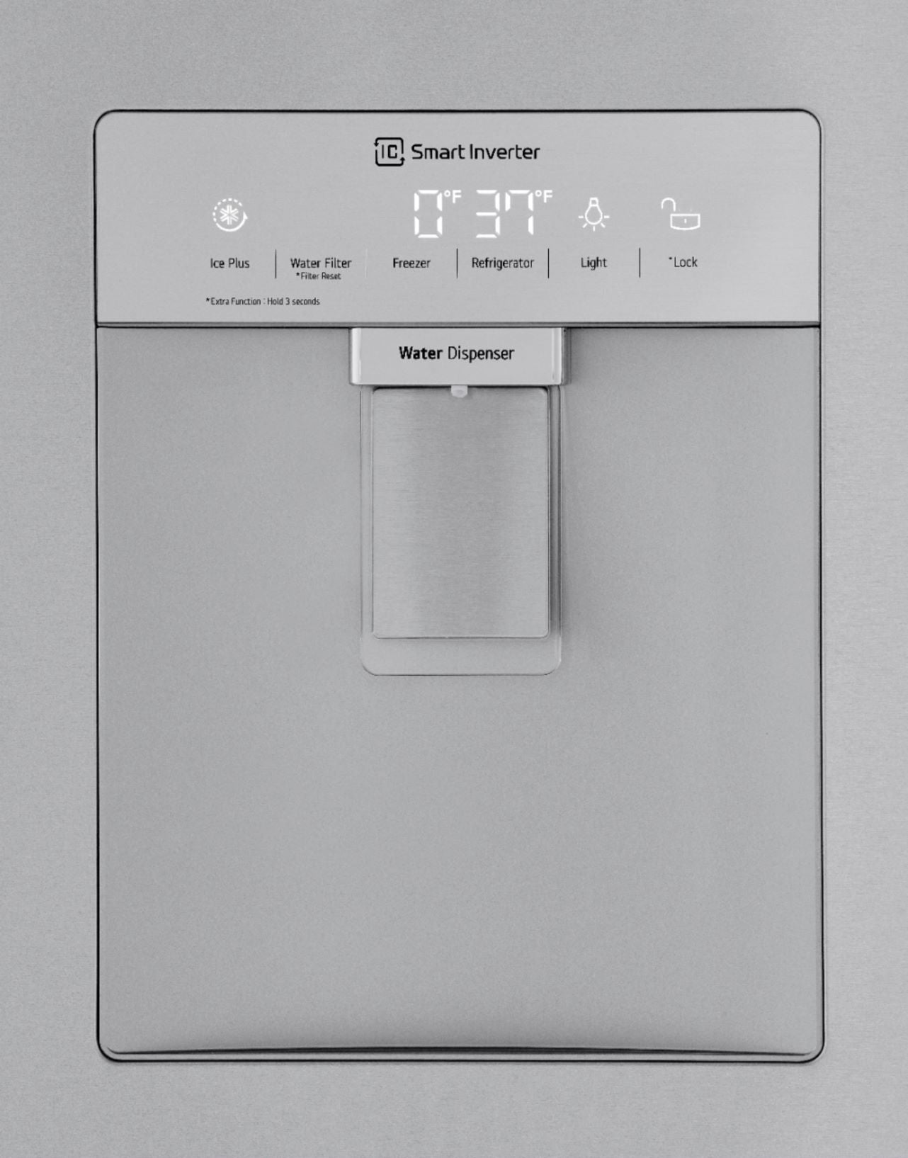 Conveniently access chilled water with our streamlined water dispenser. The slim design is virtually flush with the door for a sleek, low-profile look. It also features an LED-lit display for easy visibility.