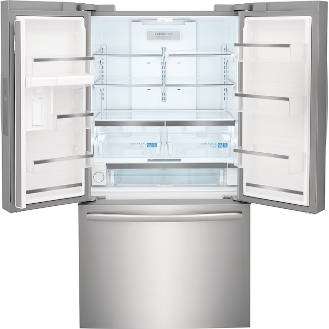 The Frigidaire 36" 28.8 cu. ft. French Door Refrigerator (Model #: GRFN2853AF) is designed for those who value both style and function. With a spacious 28.8 cu. ft. capacity, this refrigerator offers ample space to store all your fresh food items. Featuring Smudge-Proof Stainless Steel, it resists fingerprints and smudges, keeping your kitchen looking clean and sleek.
