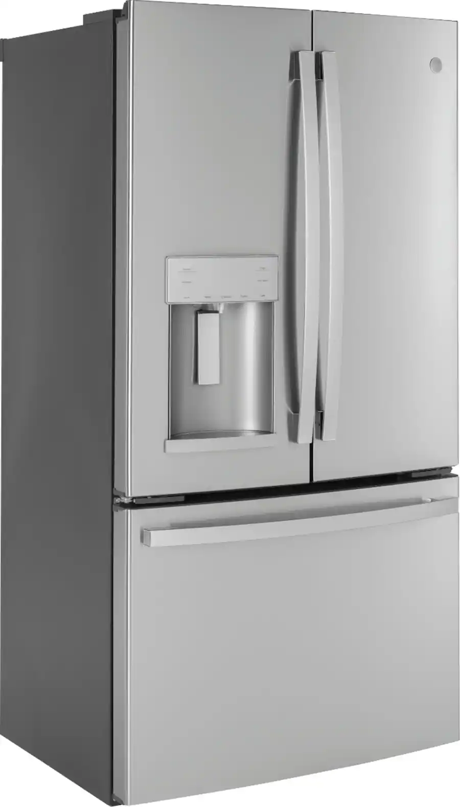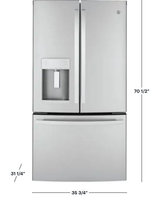 Upgrade your kitchen with the GE GYE22GYNFS, a premium 22.1 Cu Ft counter-depth French-door refrigerator that delivers style, efficiency, and smart storage. Its counter-depth design gives you a built-in, flush appearance while the space-saving icemaker located in the door frees up valuable shelf space. This model features TwinChill™ evaporators to manage separate climates in the fresh-food and freezer compartments, Showcase LED lighting to spotlight your food, and advanced water filtration for cleaner ice and water. Complete with adjustable shelving, humidity-controlled drawers, and an optional second icemaker kit, it’s designed to make everyday refrigeration smarter and more efficient.