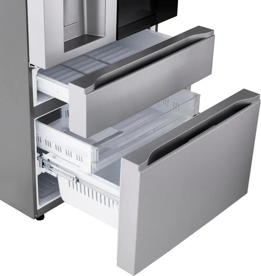 Choose your vibe with MyColor™ LED lighting, and take control with WiFi-enabled ThinQ® technology, compatible with Alexa and Google Assistant. The Full-Convert™ drawer adapts to your needs—switch between fridge or freezer with five temperature settings. Dual ice makers, fingerprint-resistant finish, and ENERGY STAR® certification make this the ideal solution for modern kitchens.